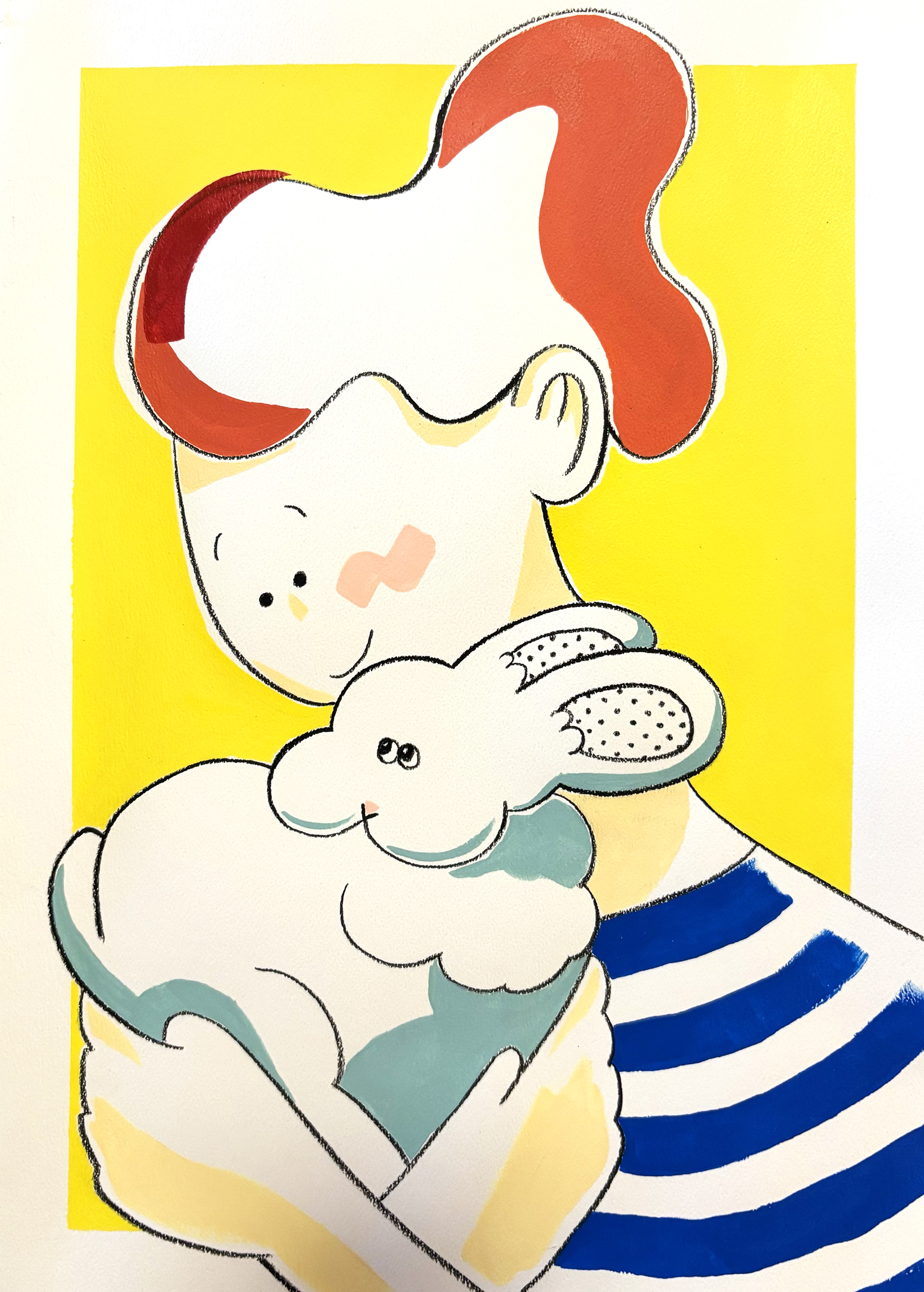 絵の具や切り絵など、さまざまな画材を使った手描きイラストです。